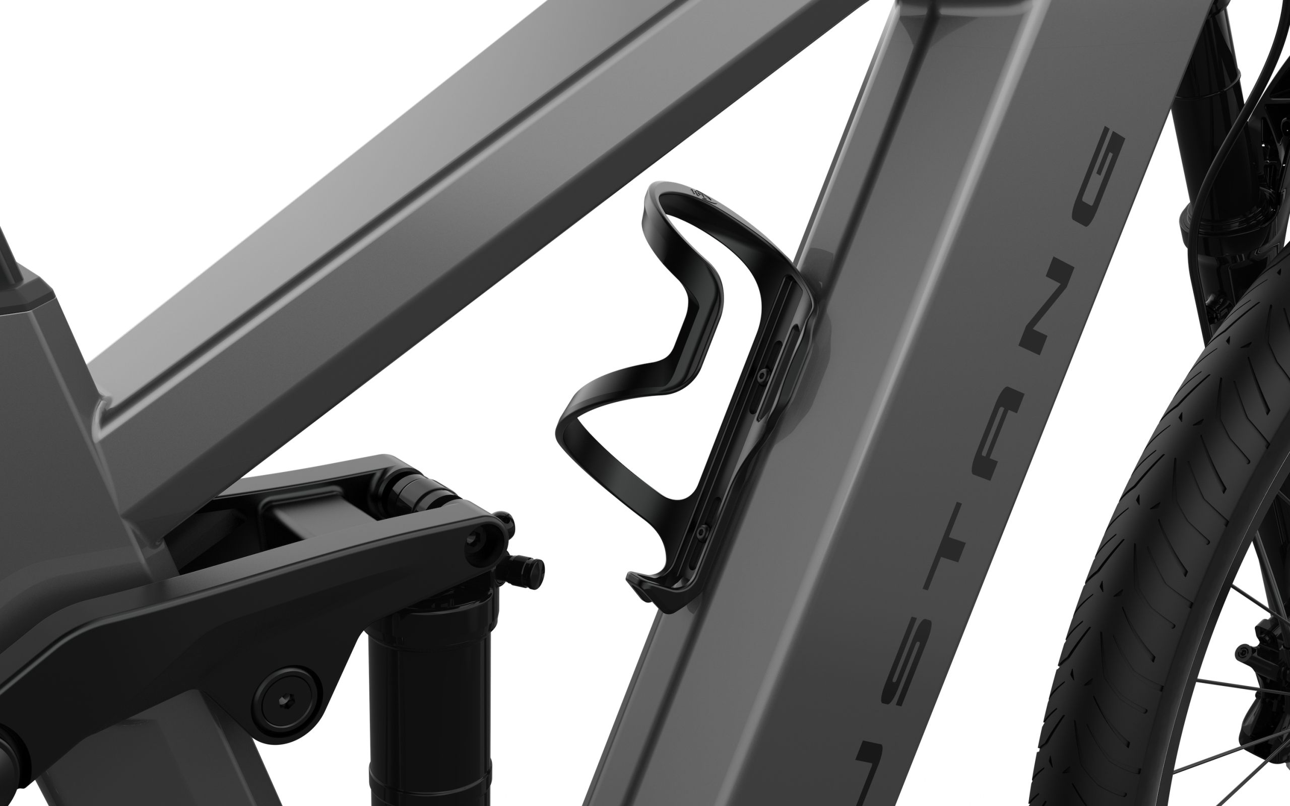 This custom Ford e-bikes water bottle cage makes it easy to access your fluids. The design makes it easy to grab your bottles on the fly, and replace them without looking down.?